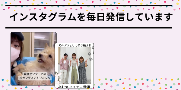 • ワンちゃんがリラックスしてトリミングを受けてもらえるようスタッフは常にトリミングのトレーニングを行っています。
